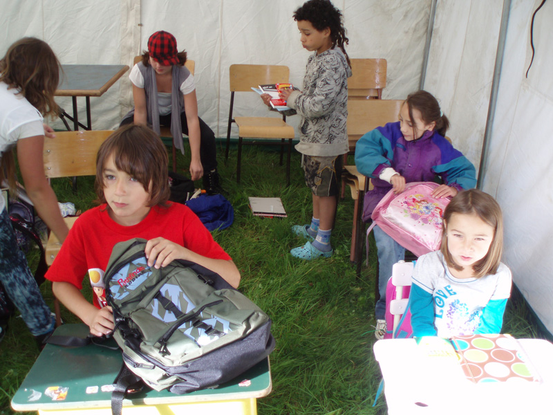 The information tent is strategically placed only six inches from the school property line. It is also a drive-through tent so as not to block vehicle access to the school.