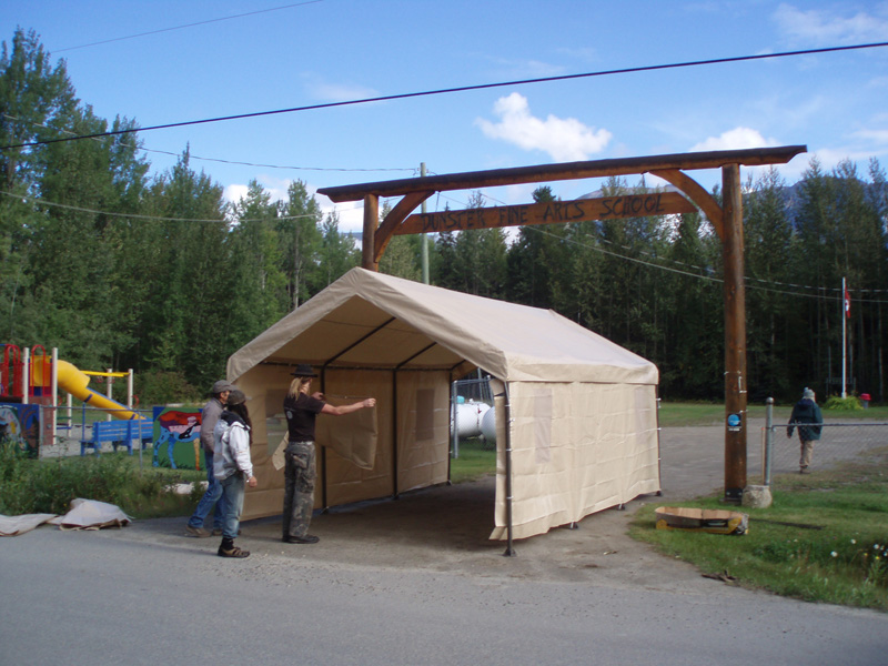 The walls are white and made of canvas. While it is certainly not the first wall tent school, the new floor space for the Dunster Fine Arts School is considerably smaller than the boarded up facility lying just 50 feet away.