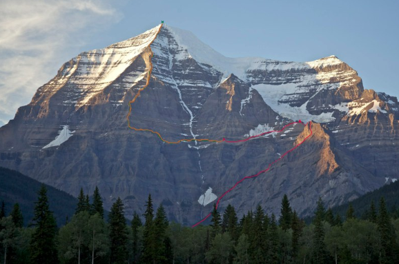 The couple attempted to scale Mt. Robson last weekend using the Wishbone Arete route along the front face of the mountain visible from the highway. Most people follow the Kain route, referring to the route the first summiter Konrad Kain took in 1913. Before leaving Valemount they said they were not going in with high expectations for having fun.