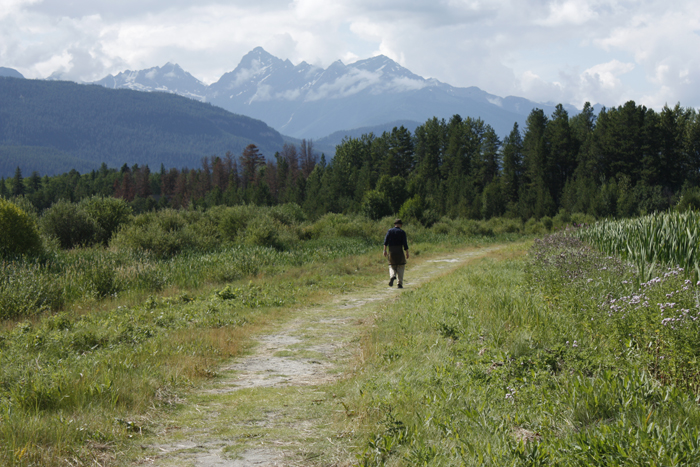 The main entrance to the trail system is on Highway 5 at the Best Western, just south of Valemount. Enter the Best Western parking lot and park in the lot closest to the highway. Or, drive down Ash st. to the very end, park at the Village sewage treatment plant and enter the trail at that point. The chain link fence disappears after a few minutes of walking. There are several other ways to enter the trail. Ask a local!