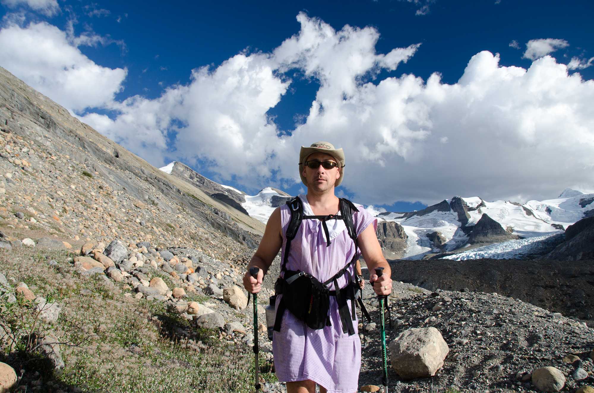“It’s very airy – which is a huge plus – and when it comes to putting on extra layers it makes it pretty easy – there were maybe a few extra mosquito bites,” says Dustin Main who just completed a five-day 70km trek along the Berg Lake Trail in a dress.