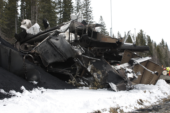The derailment left hills of spilled coal contrasting the snow last week, after 16-25 cars left their track north of McBride. No injuries were reported.
