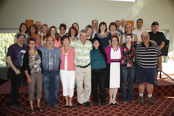 Front row: Pat Berardi, Terry-Lynn McAndrew, Bryan Blom, Kim Everard (nee Reid), Fran Nelson, Andy Norum, Susan Roy (nee Schmid), Angeline Wisk (nee Mitchell), Roxanne Sheremata.