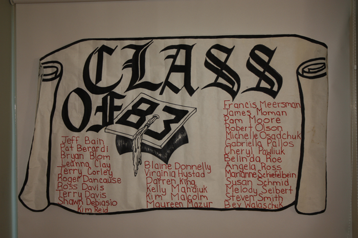 Graduates in attendance but not in the kindgergarten photo: Darren King, Shawn De Biasio, Leanne Blackwell (nee Watson), Virginia Hystad (nee Watson), Pam Loseth (nee Moore), Cheryl Sherret (nee Pawliuk), Debra Pawliuk, Kelly Mahdiuk, James Moman, Lucy Dann (nee Weaver), Roger Dancause (came from Georgia), Chris Mitchell, Ross Davis, Terry Corley, Angela Ross.