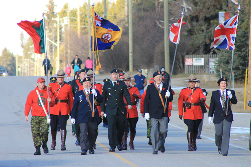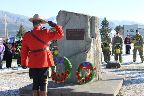 In McBride, Remembrance Day was honoured by RCMP, fire fighters, ambulance crew, and a parade down Main Street to the cenotaph.