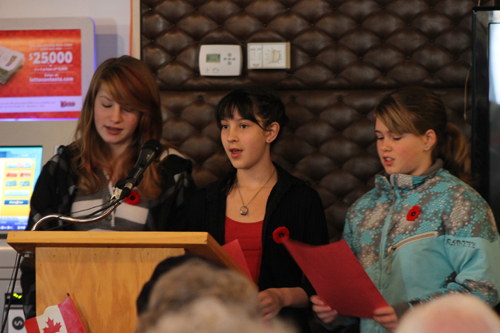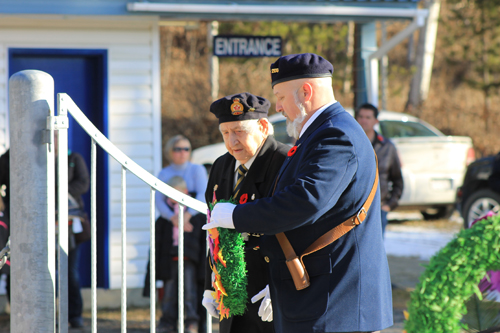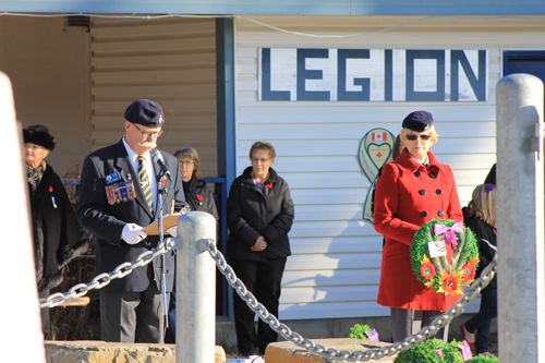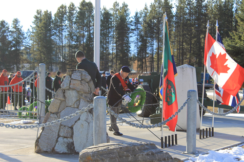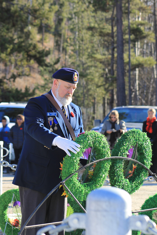 Remembrance Day ceremonies in Valemount included three lovely songs from a choir of elementary students, a student reading of In Flanders Field, a parade, and a commemorative wreath laid at the Legion for Bob Beeson.