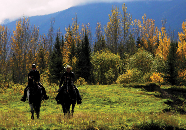 Riders of all ages were enjoying a glorious autumn day, meandering gently through rustic paths. Picture a blue sky, mountains on the background, crowned with the first snow, trees that bow dreamily overhead, and leaves – golden leaves falling as they’re falling in love with the horses. Poetry in motion. We watch them in awe as they enjoy the woods and care for each other, we feel the special bond between horse and human, and know that they wouldn’t be anywhere else right now.